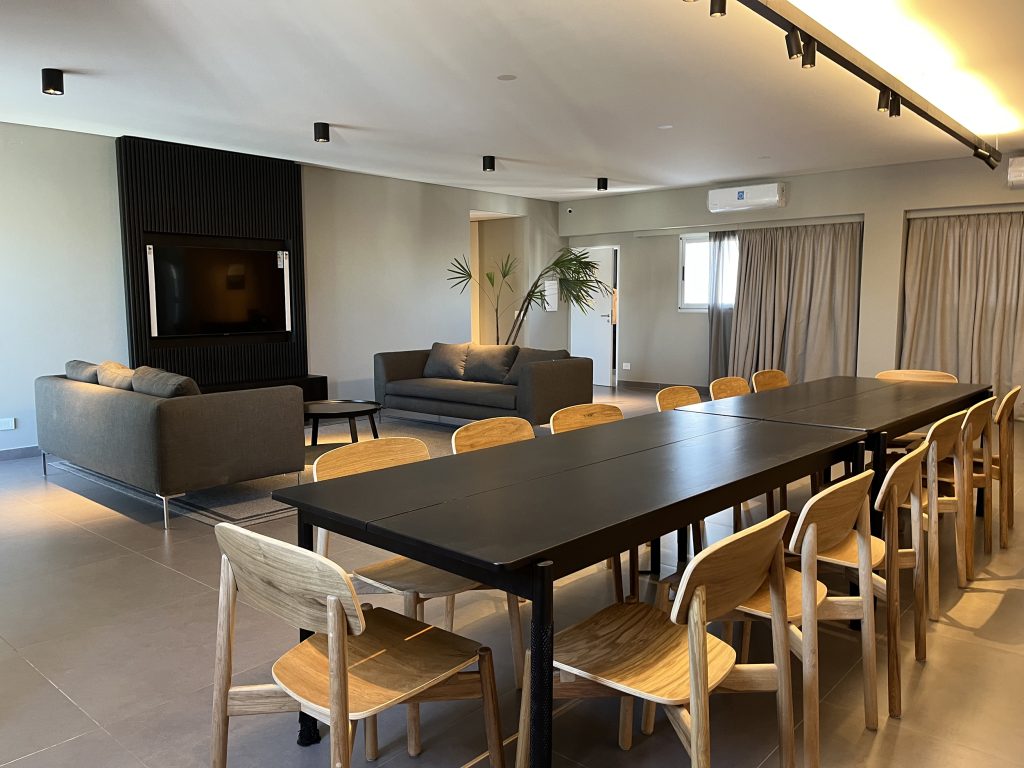 Fuimos convocados para desarrollar el diseño interior de los espacios comunes del edificio proyectado por el estudio MK. El encargo incluyó el hall de acceso, el gimnasio, el SUM y el jardín, concebidos como áreas de encuentro y transición que definen la identidad del conjunto.